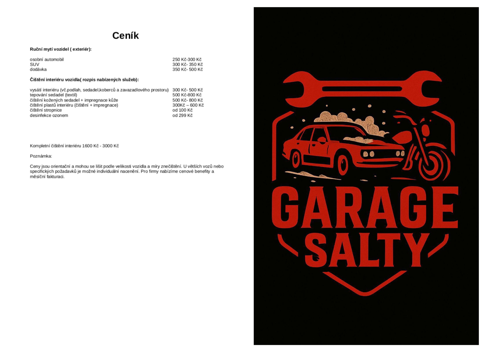 V našem autoservisu GarageSalty vám nabízíme širokou škálu služeb v oblasti servisu vozidel a motocyklů. Naše ceny jsou přizpůsobeny potřebám a rozpočtu našich zákazníků, a proto se snažíme nabízet konkurenceschopné ceny bez kompromisů na kvalitě.